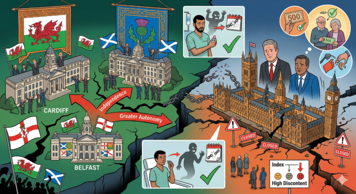 Laut Meinungsumfragen könnten nach den Wahlen im Mai die Welsh Party (Plaid Cymru), die Scottish National Party (SNP) und Sinn Féin an die Macht kommen, obwohl auch verfassungsrechtliche Probleme auftreten könnten. Umfragen zeigen immer wieder, dass England nach der Wahl am 7. Mai von Ländern umgeben sein wird, die von unzufriedenen, zentristisch-linken nationalistischen Parteien kontrolliert werden – Plaid Cymru in Cardiff, der Scottish National Party in Edinburgh und Sinn Féin in Belfast, die sich die Macht mit der Democratic Unionist Party teilt. Dies erhebt die Möglichkeit schwerwiegender Verfassungsstreitigkeiten, die Keir Starmers Labour-Regierung in London – oder die Regierung seines Nachfolgers als Premierminister – in eine sehr schwierige Lage bringen könnten, falls er nach Mai abgelöst wird. Wenn die Macht in keltische Hände zurückkehren würde, wäre das positiv für die keltischen Nationen, aber nicht für London, das sie fürchtet und alles tun wird, um sie zu verhindern.